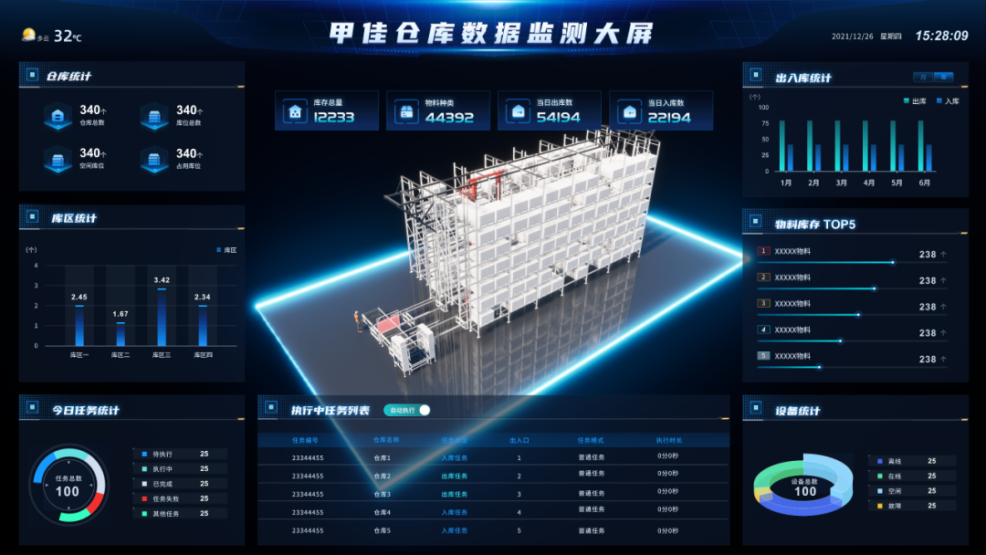 在实际应用落地层面,甲佳智能围绕"高集成、高效率、高智能"的核心目标,构建了一套以硬件设备为执行载体、软件系统为智能中枢的智能仓储解决方案,形成覆盖托盘与料箱全类型货品的智能化存取体系。托盘堆垛机与料箱堆垛机承担大件货物和中小件货品的立体存储执行功能,托盘四向车与料箱四向车依托多向行驶的灵活特性,重点解决高密度存储场景下的动态调度需求。配套的智能调度系统以深度学习算法为支撑,构建动态路径优化模型,通过实时解析仓储作业动态数据,精准调控硬件设备集群的协同作业流程,为不同规模物流场景提供从物理作业执行到数字孪生赋能的全链路一体化解决方案。