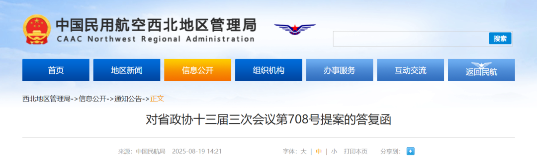 来源:民航西北地区管理局网站。