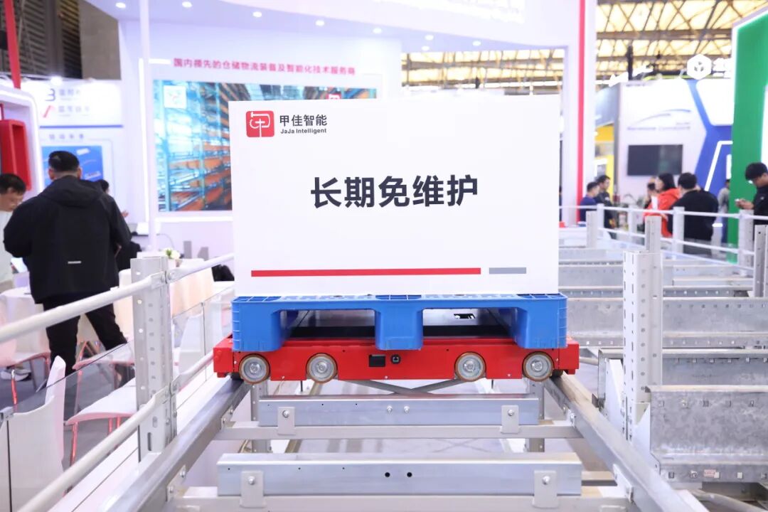 在展台核心区域,甲佳智能亮相全新一代的托盘四向穿梭车,从机械本体、驱动控制到智能感知系统进行了深度协同优化,确保托盘四向穿梭车在复杂工况下稳定运行、精准位移与高效承载。