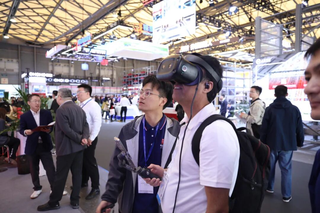 在VR体验区,现场用户借助VR头戴式交互设备,可沉浸式体验智慧物流全链路仿真场景,从AGV智能调度、堆垛机精准对位作业到分拣线高效协同运作,各环节仿真状态与实际仓储设备运行数据实现实时联动映射,清晰具象化呈现AI算法驱动下设备集群高效协同、异常快速响应及资源动态优化的全链路智能运作逻辑。