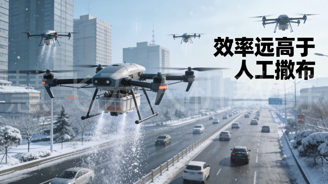 除雪作业:实现 “雪下即动” 的高效响应,单次作业清雪面积大、接单能力强,还能通过需求量化从应急补位转为常规运维;采用 “人在地面、机在空中” 的模式,从根源上规避爬棚、登高、上路等高危作业风险,大幅降低事故率;设备支持模块化改装,可实现植保、播种、除雪多场景复用,摊薄采购与运营成本,终端收费仅为人工一半,还能规避设施坍塌的潜在损失;依托智能航线规划和精准撒布系统,可精准控制融雪剂用量,部分场景采用纯物理吹雪模式,搭配热成像设备实现按需作业,兼顾环保与作业精度。