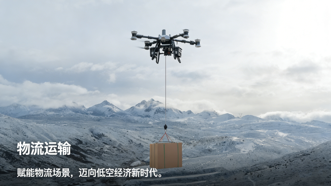 物流与农林:激活双向链路 适配偏远地区“小批量、高频次”物流需求,将生鲜、日用品配送时效从2天压缩至1小时,降低人力成本。农林领域可运输果树苗木、有机肥,精准投放至田间地头,1架设备1小时可覆盖100亩果园,人力成本降低90%,同时能将中药材、食用菌等农产品从山区运出,打破“进出两难”困境。