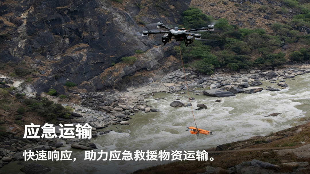 应急与公共服务:抢通生命通道,灾害现场道路中断时,10分钟集结起飞,25分钟即可将应急物资送达被困点,通过热替换实现1小时3趟运输,覆盖200余名受困人员,效率较人力徒步提升12倍。在偏远山区与高原牧区,常态化配送米面油、药品、疫苗,15分钟即可完成乡镇到山村的物资转运,破解“最后一公里”难题。